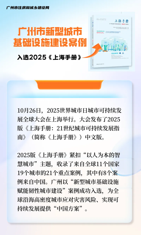 行業(yè)動態(tài)|廣州市新型城市基礎設施建設案例入選2025版《上海手冊》發(fā)表時間:2025-11-14 10:53 來源:廣州市住房和城鄉(xiāng)建設局